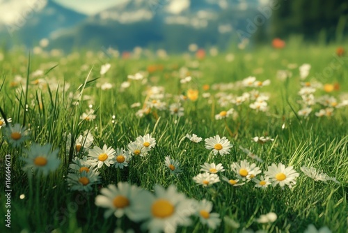field, flower, landscape, nature, scenery, mountain, range, outdoors, countryside, environment, green, view, panorama, distant, land
