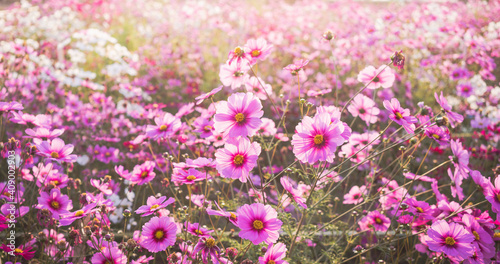 flower, cosmos, field, nature, beautiful, landscape, colourful, pink, blooming, garden, pretty, summer, sunny, morning, meadow, calm, colours, peace, floral, green, autumn, blossom, botany, environment, flora, fresh, natural, plant, spectacular, vitality, violet, beauty, bright, light, spring, season
