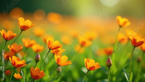 Field of delicate orange flowers swaying gently in the breeze, landscape, orange, garden