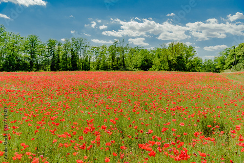 field, poppy, landscape, poppy, nature, meadow, sky, flower, summer, red, flower, green, spring, blue, grass, countryside, rural, agriculture, plant, cloud, field, beauty, beautiful, wild, blossom
