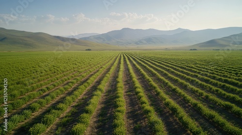 Field of sunflowers in full bloom, their bright yellow heads turned towards the sun, embodying the vibrancy of summer agriculture.