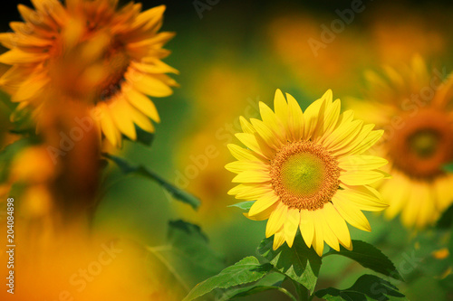 field of yellow blooming sunflowers