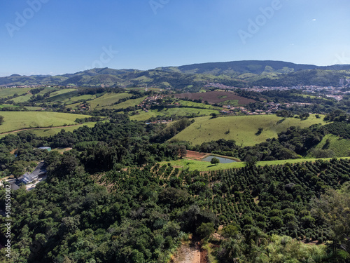 fields with plantations in small mountains in a city in the interior - Socorro, São Paulo, Brazil