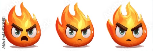 Fierce and Fiery Animated Characters Expressing Different Emotions in Vibrant Colors Against a Clean Background