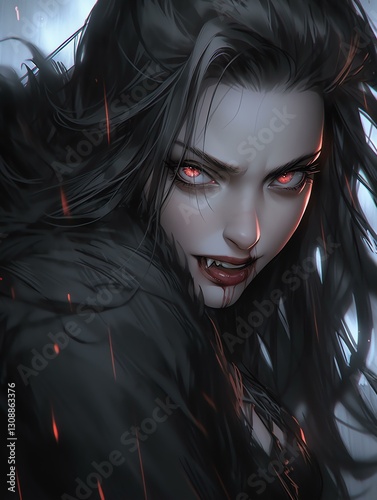 anime, woman, fang, red eye, manga, illustration, digital artwork, warrior
