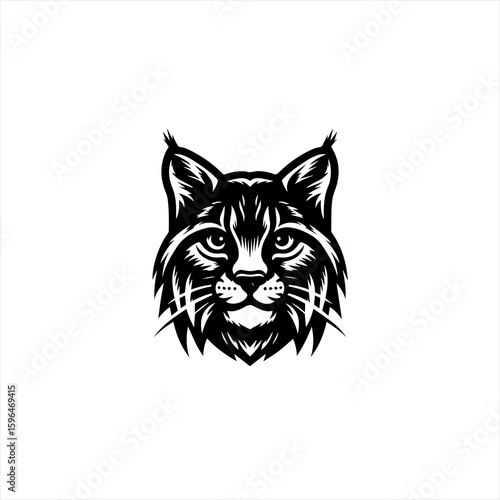 bobcat, lynx, wildcat, felino, cat, animal, wildlife, predator, hunter, mascot, logotype, emblem, symbol, graphic, illustration, design, black, white, monochrome, stencil, silhouette, vector, art, drawing, vignetting, head, pet, wolf, cute, tattoo, kitten, cartoon, mammal, wild, eye, domestic, cat, dog, tiger, fur, nature