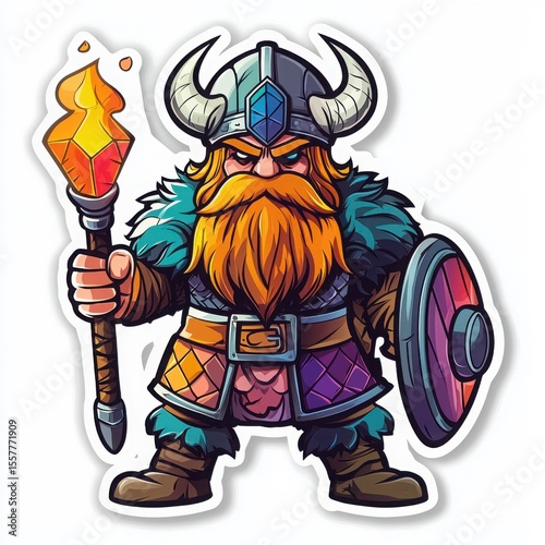 Fierce Cartoon Viking Warrior: Colorful Nordic Heroic Adventure in Fantasy Art