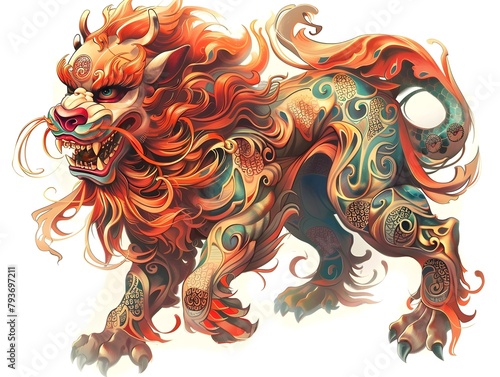 Fierce Mythical Beast Vibrant Fiery Spiritual Creature of Ancient Oriental Folklore