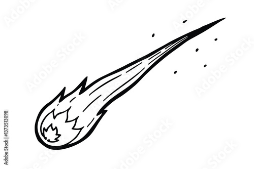 comet, meteor, fireball, shooting star, space, celestial, astronomy, astrology, cosmos, universe, galaxy, night sky, tail, flames, fire, trail, speed, fast, bright, light, drawing, illustration, vignetting, hand-drawn, artwork, art, graphic, design, vector, black, white, simple, icon, symbol, element, clip art, cartoon, comic, animation, science, nature, phenomena, astronomic, heavenly, body, rock, falling star