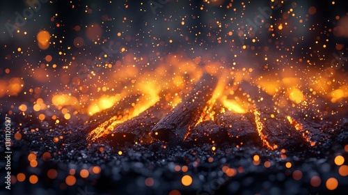 Fiery embers glow warmly in a crackling fire. A captivating display of flames and sparks