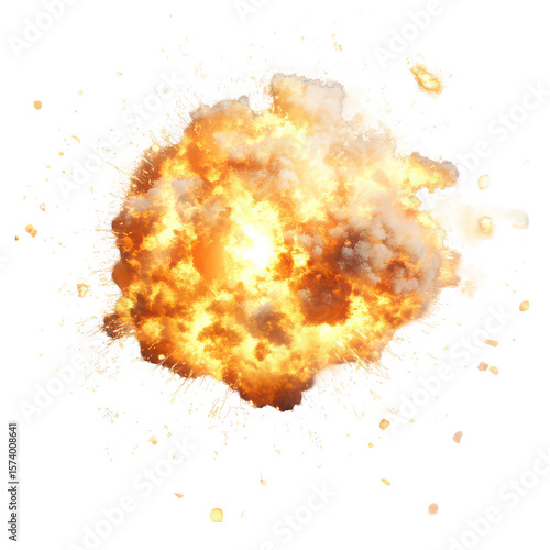 explosion, fire, blast, smoke, energy, impact, destruction, heat, bright, orange, white, yellow, black, debris, particle, burst, intense, powerful, dynamic, dramatic, action, danger, force, chaos, kinetic