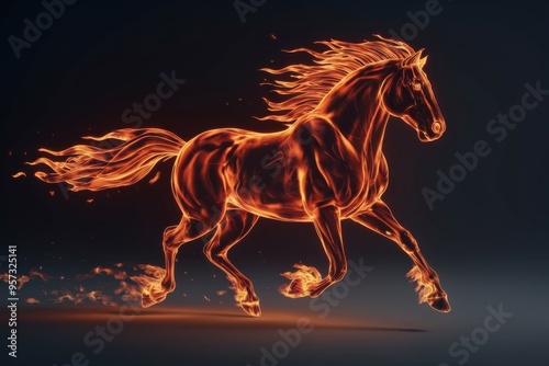 Fiery Galloping Horse with Glowing Flames on Black Background.