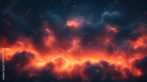 nebula, cloud, fire, star, orange, red, dark, night, sky, cosmic, space, galaxy, universe, astronomy, celestial, fiery, bright, glow, light, dust, particle, aethereal, mystical, magical, wonder, awe, beauty, colours, vibrant, intense, dramatic, abstract, texture, pattern, background, image, art, digital, fantasy, scene