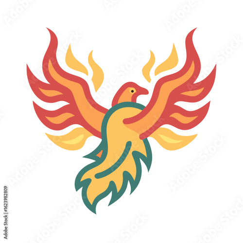 phoenix, bird, fire, flames, rebirth, legend, mythology, vector, illustration, symbol, logotype, fantasy, rise, fiery, transformation, black background, orange, red, yellow, design, icon, graphic, artistic, stylised, rising, colours, colourful, vibrant, bright, design element