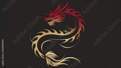 Fiery Red and Gold Dragon Illustration, celebrate chinese new year