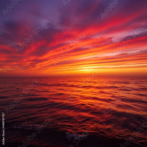sunset, ocean, sea, sky, red, orange, cloud, horizon, water, nature, landscape, twilight, evening, colours, vibrant, dramatic, beautiful, scenic, peaceful, calm, serene, tranquil, gold, hours, sunrise, fire, natural, travel, vacation, holiday, photo, photo, image, picture, view, scene, background, texture