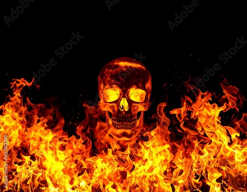 Fiery skull against black flames