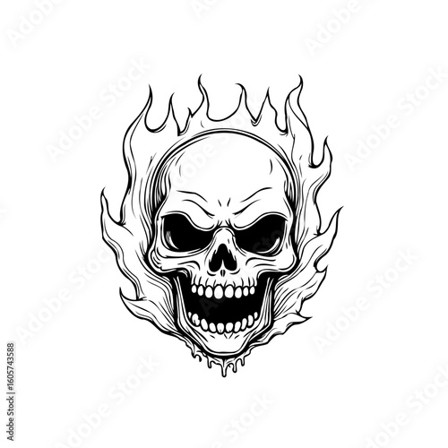 skull, fire, flames, danger, death, head, skeleton, hell, halloween, gothic, evil, skittish, burning, horror, tattoo, illustration, vector, dark, dead, bone, graphic, art, design, outline, drawing, concept, symbol, anatomy, morbid, artwork, monochrome, demonic, fear, vintage, retro, abstract, decoration, element, isolated, background, t, shirt, print, poster