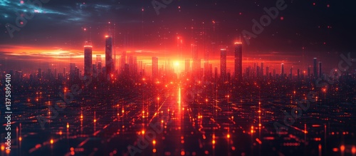 city landscape, futuristic, sunrise, city, skyline, red, light, glow, technology, digital, urban, architecture, amazing, vibrant, glowing, fiery, sunset, night, dawn, light, skyscraper, modern, illustration, virtual, animation, three-dimensional, graphic, design, background, concept, poster, artwork, art, neon, abstract, future, illuminated, panoramic, wallpaper, high technology, aerial view, digital artwork