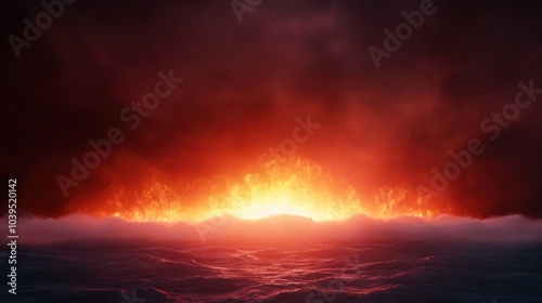 sunset, ocean, wave, fire, dramatic, nature, landscape, seascape, dusk, evening, storm, weather, power, energy, turbulent, moody, atmospheric, serene, tranquil, scenic