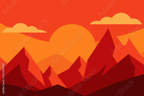 Fiery Sunset over Majestic Mountains A Vibrant Landscape Illustration
