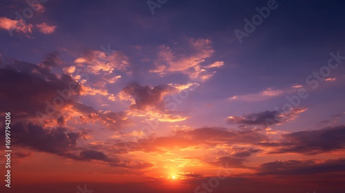 Fiery Sunset Skies A Dramatic Vista of Orange, Red, and Purple Clouds Ablaze