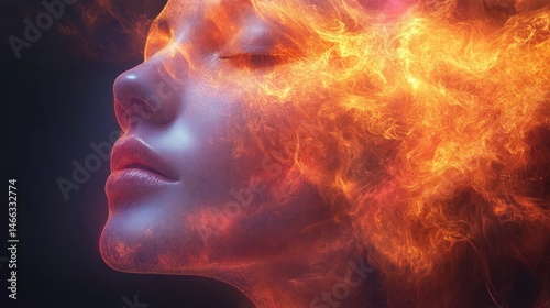 woman, fire, flames, face, portrait, abstract, art, digital, fantasy, surreal, energy, passion, intensity, heat, warmth, light, glow, beauty, power, transformation, soul, spirit, inner, strength, hugs, burning, inferno, blaze, ember, flicker, orange, red, yellow, dark, smoke, design, graphic, artistic, image, visual