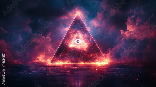 triangle, fire, eye, symbol, mystical, dark, night, sky, cloud, water, glow, neon, light, energy, abstract, fantasy, art, digital, graphic, design, occult, esoteric, mystery, power, cosmic, space, surreal, ominous, burning, inferno, flaming, red, pink, blue, black, smoke, atmosphere, texture, illustration, image