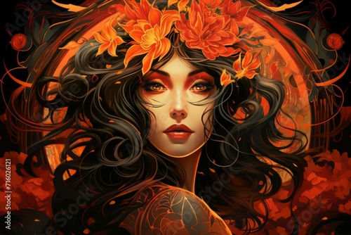 elegance, geometric, ornate, streamlined, roaring, 20s, wallpaper, desktop, background, art, pen, paper, generative, ai, art deco, illustration, mystic, fiery, tempered, sorceress, fire, magic, scorched, earth, captivating, fantasy, professional, visual, artist, passionate, intense, heat, mesmerizing, flames, category, designer, photographer, flames, mage