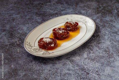 fig jam, Turkish dessert. (Turkish name; incir receli)