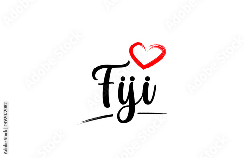 Fiji country name with red love heart and black text