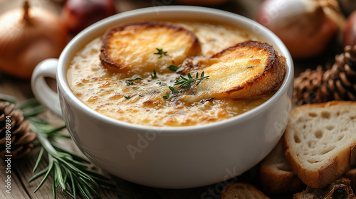 soup, warm, winter, crouton, rosemary, meal, dish, delicious, cheese, herb, coffee, spicey, bread, french cuisine, richness, dinner, naivete, gold, season, butter, handcraft, classic, epicurean, rich, relax, copy space