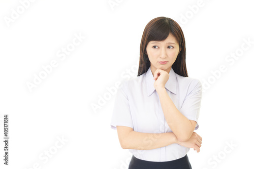 woman, people, people, business, work, working girl, office, flop, oversight, sad, drop, contemplate, idea, depression, stress, apprehension, disapproval, overwork, fatigue, corporation, corporate, work, woman, young, adult, youth, career woman, expression, sweet, pretty, model, beauty, girl, health, cosmetic, face, suit, shirt, alone, japanese, asian, waist up, copy space, white background