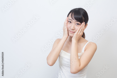 cosmetic, skincare, toilet water, skin, woman, beauty, people, bare skin, moisture, refill, hand, young, girl, relax, japanese, cheek, este, make-up, make-up, camisole, lifestyle