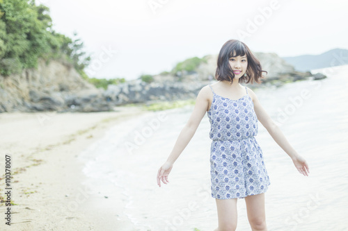 sea, beach, woman, japanese, play, walk, frolic, wave, sky, seto inland sea, island, desert island, peninsula, landscape, people, blue skies, nature, smile, beach, resort, cloud, open air, fun, young, summer, sweet, lively, copy space, girl, japan, water, water surface, cape, beauty