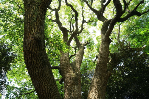 森林内に伸びる新緑の大樹