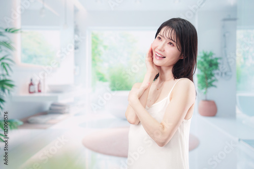 woman, missy, skincare, house, skin, beauty, cosmetic, cosmetic, cream, home, relax, health, care, toilet water, clean, mirror, bare skin, healthy, natural, face, refresh, man, asian, japanese, chinese, korean, copy space