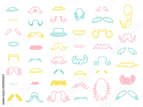 いたずら書き風のパステルカラーの可愛いヒゲのアイコンセット