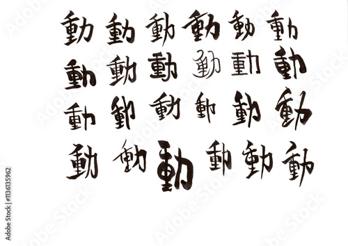 ornament, character, ink, calligraphy, monotone, signs, set, art, chinese character, freehand, material