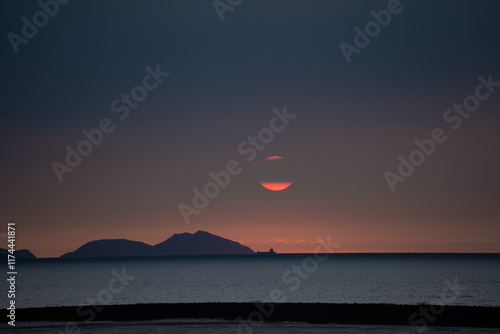 sea, sunset, landscape, island, nature, cloud, travel, horizon, orange, sunset, sun, red, sunshine, calendar, nature, outdoors, landscape, scenic, shiny, reflex, hope, object, orange, red, red, ocean, wave, evening, new year, jan, sunrise