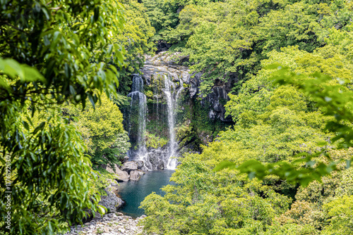 호수와 나무 그리고 바위가 어우러진 풍경 제주 서귀포시 중문동 천제연폭포