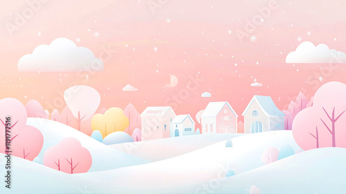 village, pink, sweet, winter, fantasy, handwriting, pastel, illustration, snow, house, wood, background, nature, sky, star, soft, design, lovely, peace, landscape, imagination, light, gentle, dream, tone, house, calm, mildness, art, healing, crispness, tale, fairy tale, landscape, decoration, elegant, paradise