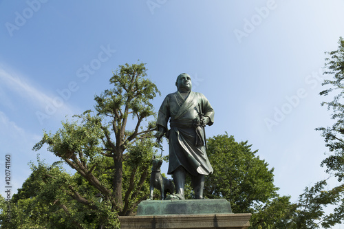 park, historic site, bronze, green, landscape, nature, healing, oasis, tokyo, japan, tour tourism, travel, journey, tourist attraction, tour, spot, showplace, celebrate, image, stroll, walk, sky, politician, metaphor, dog, history, historical building, memory, excursion, ueno, symbol, blue skies