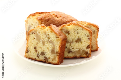 pound cake, baked goods, cake, cake, confectionery, sweet, snack, food, handcraft, apple, apple, apple, walnut, nut, fruit, fruit, cut, slice, sweet, delicious, nut