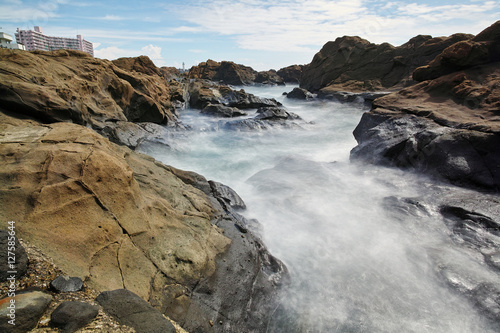 beach, sea, coast, landscape, beach, wave, white horse, impressive, blue skies, brine, rock, cloud