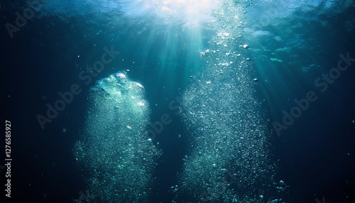 bubble, foam, air, vapour, sea, dive, scuba diving, calm, quiet, peace, aquatic, water, sea, blue, deep, light, abstract, sunlight, aqualung, nature, background, texture, wave, light, dark