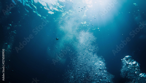 bubble, foam, air, vapour, sea, dive, scuba diving, calm, quiet, peace, aquatic, water, sea, blue, deep, light, abstract, sunlight, aqualung, nature, background, texture, wave, light, dark