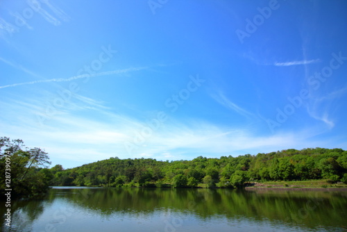 広がる青空と緑が映る水面