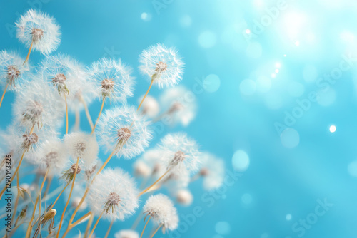 taraxacum, fluff, species, plant, background, copy space, background, summer, flower, fluffy, spring, nature, grass, flower, seed, pretty, light, floral, closeup, flora, clean, shiny, wind, beauty, pigmentation, colours, macro, light, green, season, field, blue, blue, blue skies, refreshing, up, life, vitality, vain, illustration