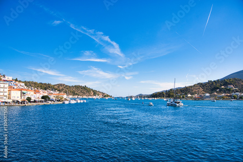 sea, boat, water, travel, island, city, town, waterfront, sky, architecture, summer, tour tourism, landscape, port, view, aegean, port, harbor, vacation, resort, greece, european